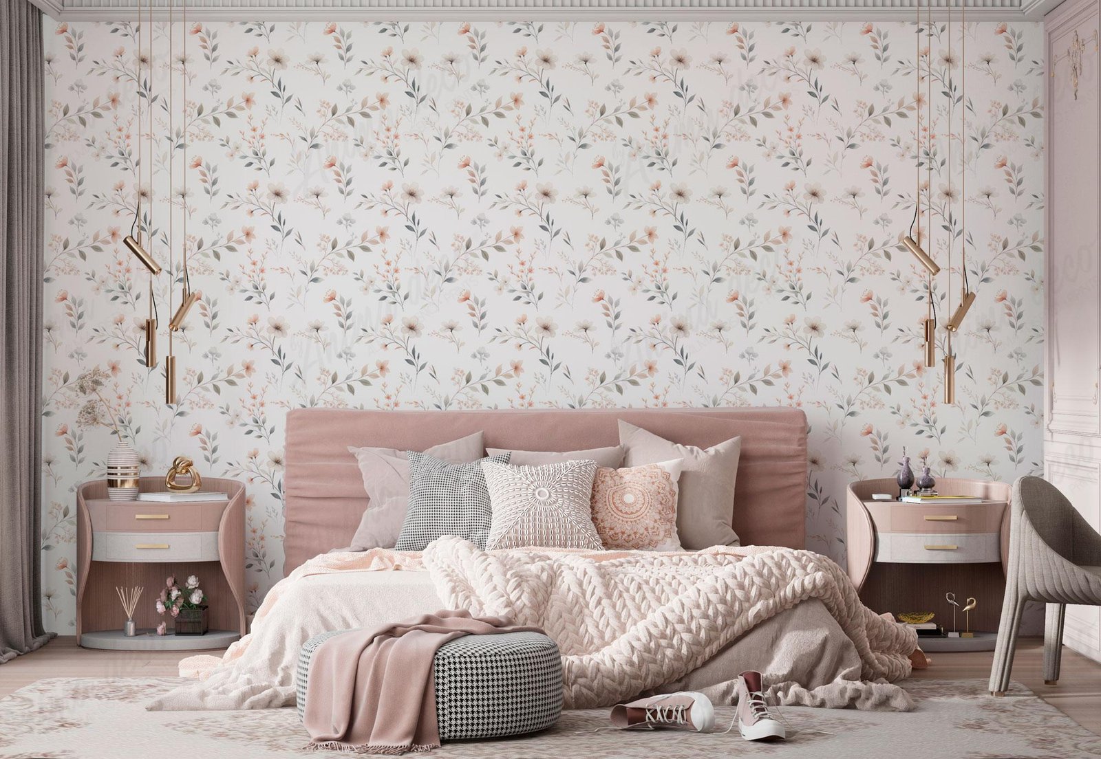 *The images are illustrative: the pattern is repeated every 1m and is presented in panels 52cm wide by the height of your wall (e.g. photo 2 simulates a 4.5x3m wall). The digital tones compared to the printed ones may differ depending on the calibration of each screen.