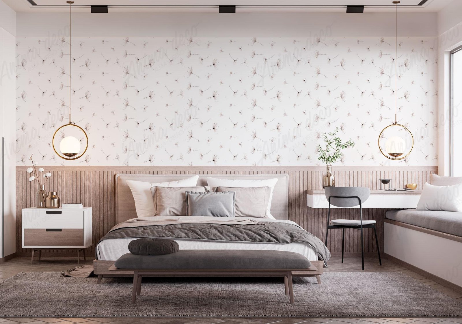 *The images are illustrative: the pattern is repeated every 1m and is presented in panels 52cm wide by the height of your wall (e.g. photo 2 simulates a 4.5x3m wall). The digital tones compared to the printed ones may differ depending on the calibration of each screen.